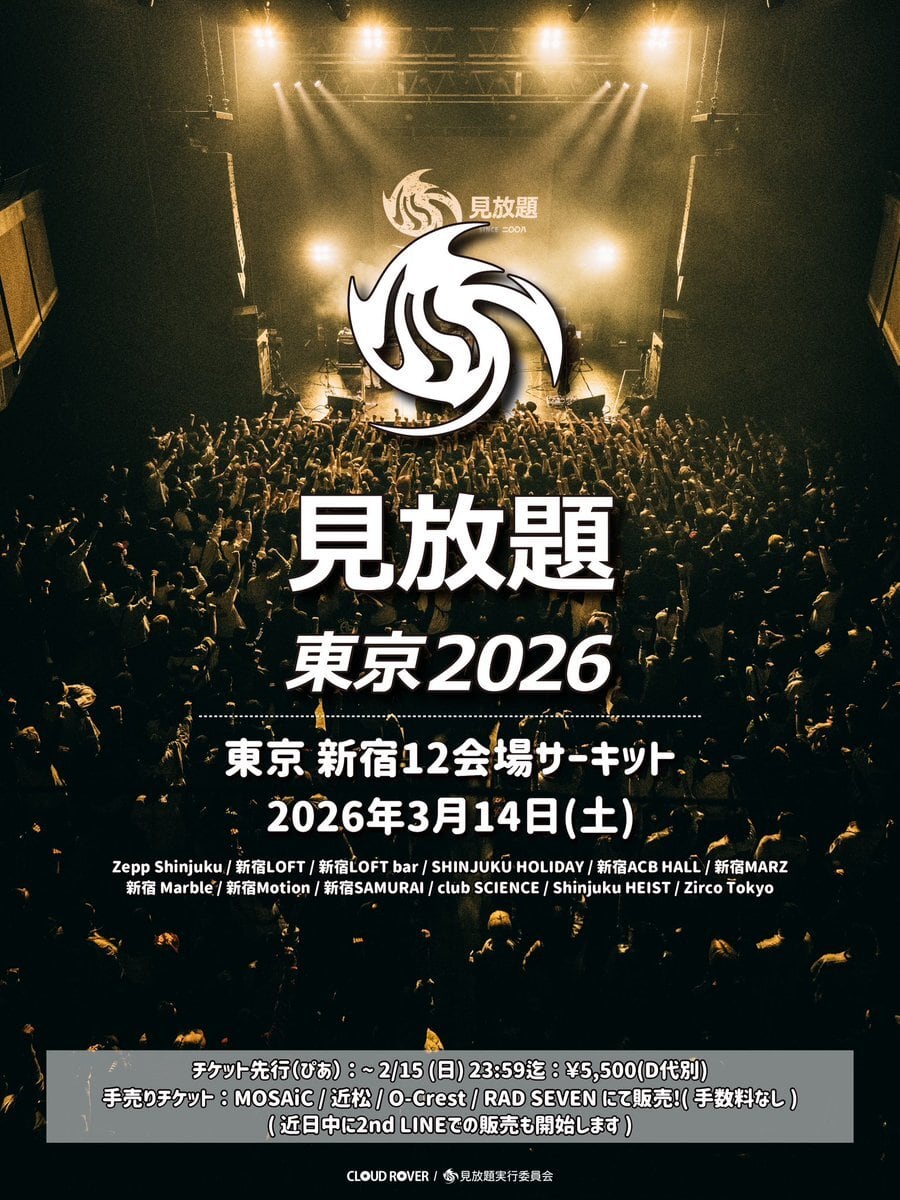 見放題東京2026の手売りチケットになります!!なんとザ•あとばん初出演!!手売りチケットなら手数料無料なのでおそらくチケプラより安く済みます!!この機会にぜひ!!!